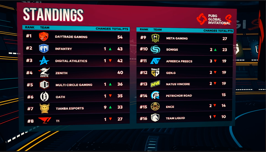 As a result of the matches played today, DayTrade Gaming (DAY) took the first place with 54 points, INFANTRY (IFTY) took the second place with 43 points and the Digital Athletics (DA) team took the third place with 42 points.