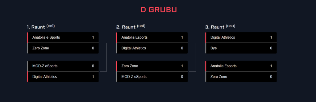 In the second round of Group D, the winners match took place between Anatolia e-Sports and Digital Athletics. The Digital Athletics team managed to win with a score of 13-4 with its comfortable and flawless game. Thus, Digital Athletics became the first team to leave Group D.