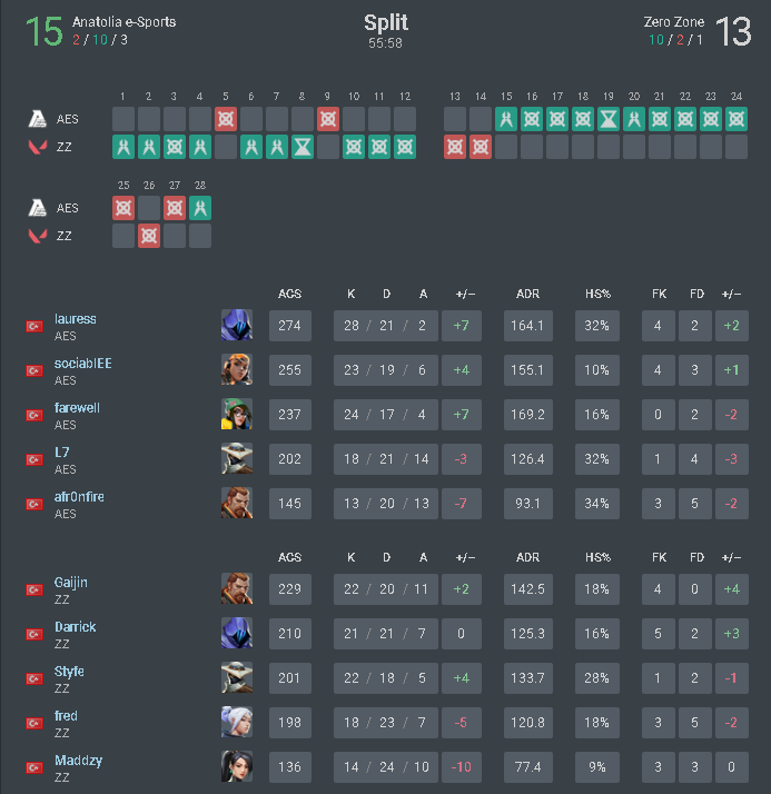 The last match of Group D was played between Anatolia e-Sports and Zero Zone, two teams with one loss and one victory, on the best 3 maps. By 13-9, Zero Zone won the Haven map and by 13-8, Anatolia e-Sports won the Bind map. The final map of the final match was Icebox. Anatolia e-Sports wins with an overwhelming score of 13-6, becoming the second team to leave Group D.