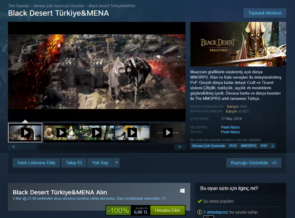 Black Desert Türkiye&MENA Steam Mağaza sayfasına gitmek için buraya tıklayabilirsiniz.