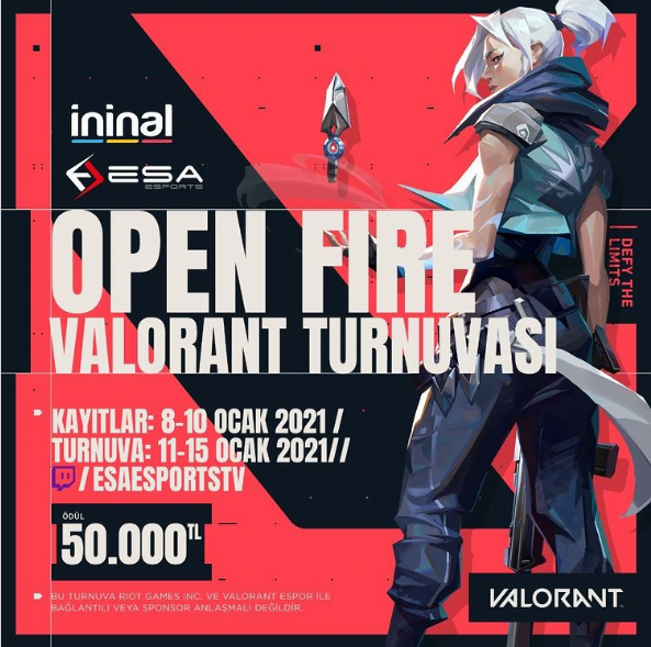 İninal Kart sponsorluğunda olan Valorant Open Fire Turnuvası bu akşam (11.01.2021) saat 19.00’da birinci elemeleri ile başlıyor.