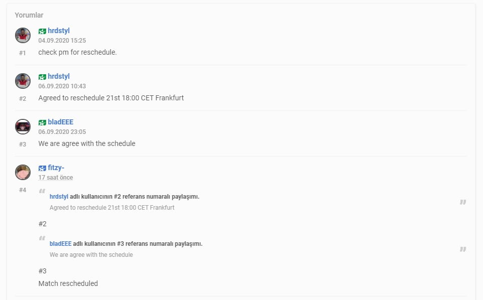 Ayrıca diğer temsilcimiz Sangal Esports aynı ligde bugün saat 19.00’da Movistar takımı ile karşı karşıya gelecekti. Ancak takım koçu Canpolat “hardstyle” Yıldıran’ın talebi üzerine karşılaşma 21 Eylül saat 19.00‘a ertelendi.