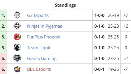 Turnuvanın birinci gününde temsilcimiz BBL Esports, G2 Esports ile karşı karşıya geldi. Karşılaşmayı 2-0 kaybeden temsilcimiz bugün NiP karşısında galibiyet arıyor.