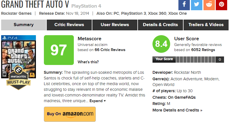 Metacritic Xbox One kullanıcı puanları sayfası için tıklayın. Metacritic PS4 kullanıcı puanları için tıklayın. Metacritic PC kullanıcı puanları için tıklayın.