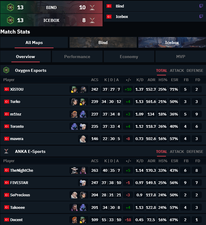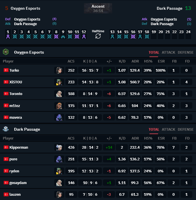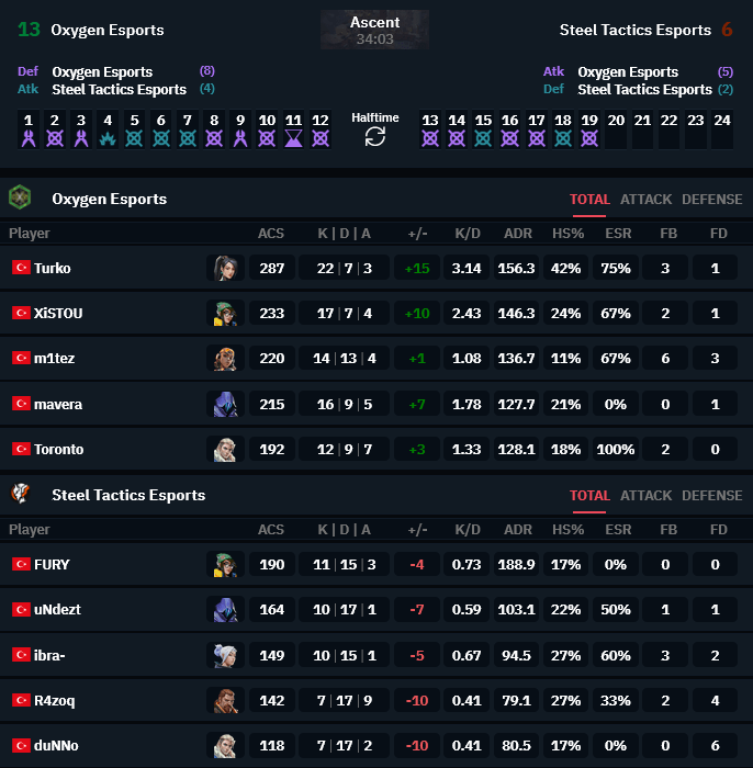 Elite Invitational Valorant B Grubu’nun ikinci karşılaşması ise Oxygen Esports ve Steel Tactics arasında oynandı. Oxygen bu haritayı 13-6 önde bitirdi. Steel Tactics ise Kaybedenler Grubu’na düştü.