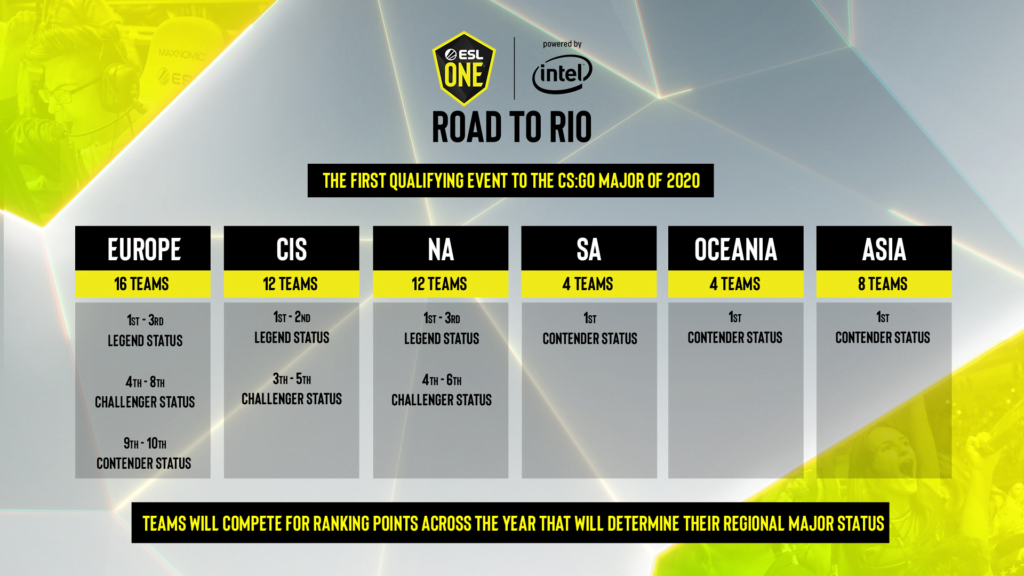 İlk turnuva, Intel®’in desteği ile birlikte gerçekleşecek ve ESL One: Road to Rio olacak.