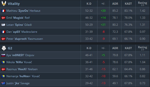 Team Vitality bu sonuç ile beraber ESL Pro League Season 16 finalisti olan ikinci takım oldu.