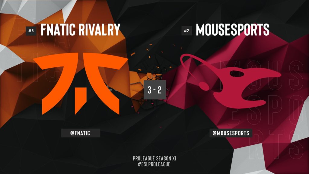 Aslında geçen yılın rövanşı niteliğinde bir final oynandı. ESL Pro Lig Sezon 10‘da aynı iki takımı finalde görmüştük ve kazanan mousesports olmuştu. Geçen senenin şampiyonu tahtını, yine geçen seneki rakibine karşı korumak zorundaydı. Fnatic ise intikam için bu seriyi kazanmak zorundaydı.