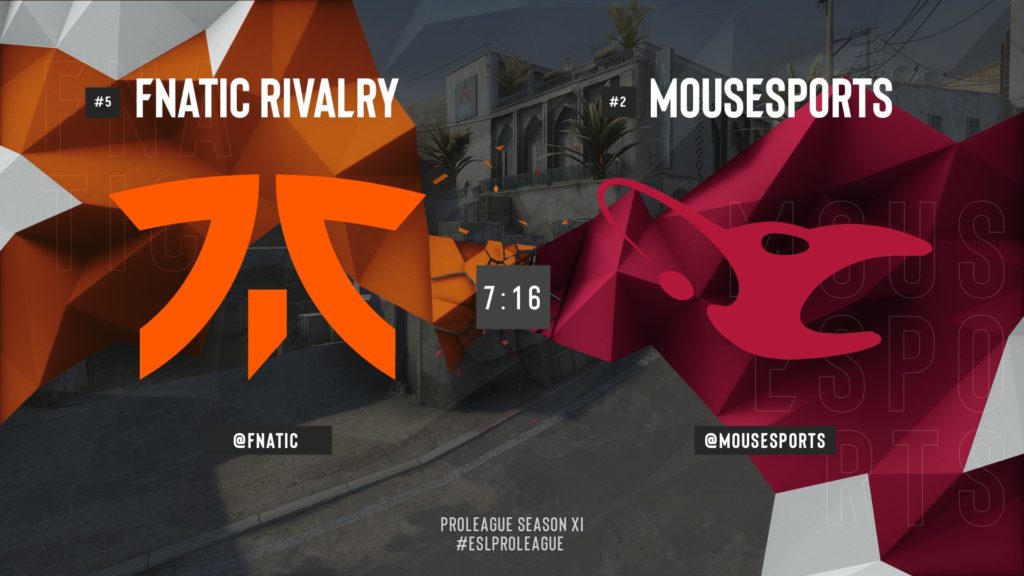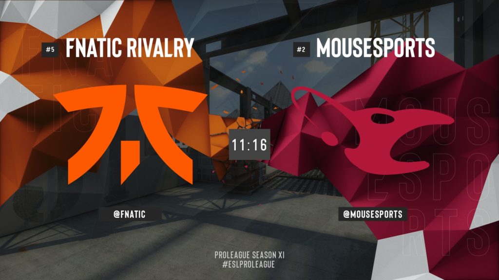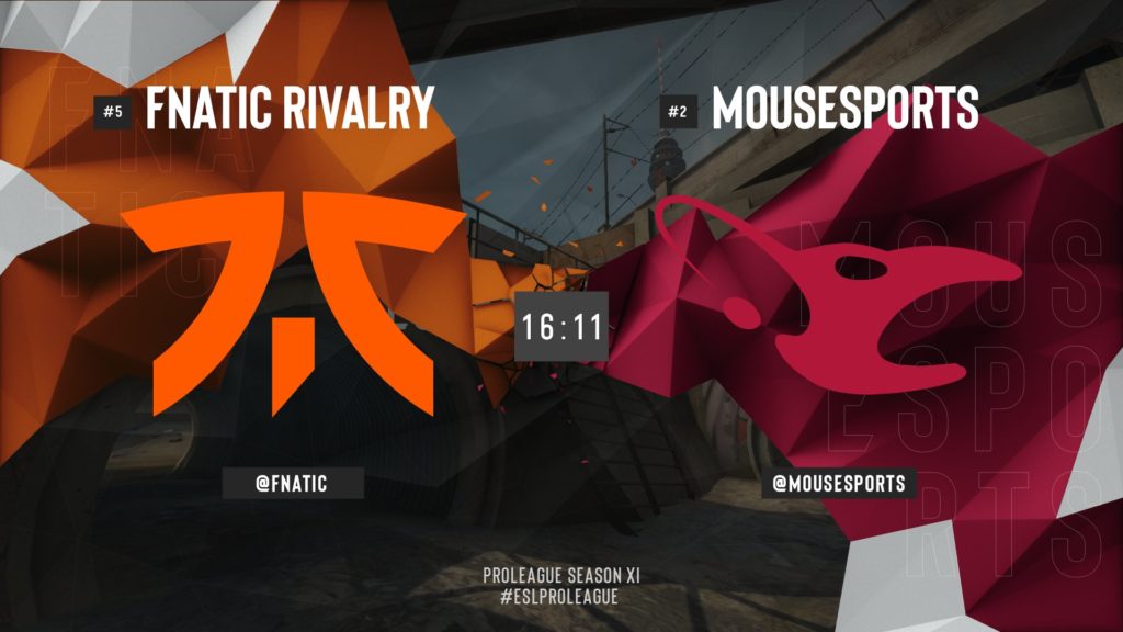 Her zaman ki heyecanın dorukta olduğu bir sezon yaşandı. Final ise tam da buna yakışırdı. Harita seçimine Fnatic başladı ve ilk haritayı Overpass olarak seçti. Mousesports‘un dün gibi bugün de seçtikleri ilk harita Dust 2 oldu. Daha sonra Fnatic, Vertigo haritasını seçti. Mousesports ise buna karşılık Nuke seçimini yaptı. Ve son harita olarak Mirage seçildi.