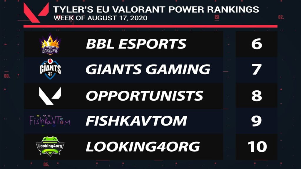 ESPN Esports hesabı, Valorant’ın profesyonel ayağına takip eden iki muhabirine, en iyi takımların sıralamasını yaptırdı. Temsilcimiz BBL Esports, iki muhabirin listesinde de ilk 10’a girmeyi başarırken diğer temsilcimiz Looking4org, sadece FionnOnFire’ın listesine girmeyi başardı.