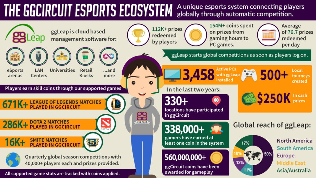 ggCircuit kurumsal müşterileri için yönetim sistemi, turnuva platformu ve satış çözümleri sunan bir danışman şirket. Şu anda 1.000’den fazla bağı bulunan ggCircuit’in işleri arasında GameStop, Dell, Best Buy, Lenovo gibi ünlü şirketlerin yanı sıra bazı Kuzey Amerika üniversiteleri de bulunmakta.
