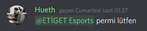 Son olarak geçtiğimiz aylarda oynanan PGS Berlin Region Qualifier‘da Mea bölgesinde 2. olarak Berlin’de ki elemeye gitmeye hak kazanan Etiget takımı, Berlin dönüşü Davut ”FreeNp” Kılıç ile yollarının ayrıldığını sosyal medya hesaplarından duyurmuştu. 21 Mart’ta başlayacak olan PUBG Türkiye Ligi için Pubg Espor Topluluğu Discord’unda Emir ”Hueth” Çakmak Etiget permi alarak takıma transfer olduğunu duyurdu. ”Hueth” daha önce Futbolist ve Fastplay Wildcats takımlarında oynamıştı.