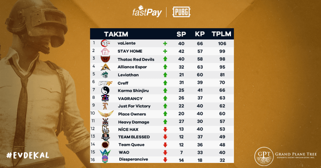 2 gün boyunca oynanan 12 maç sonucu vaLiente ekibi 106 puan ile büyük ödül olan 3.000 TL‘nin sahibi oldu ve adını fastPay PUBG Türkiye Şampiyonası’nın sonraki sezonuna adını yazdıran ilk amatör ekip olmayı başardı. fastPay PUBG Türkiye Şampiyonası’na direkt çıkacak olan 2. ekip ise 1 puan fark ile Stay Home ekibi oldu. Sıralamada 3-12 arasında olan takımlar ise fastPay Pubg Türkiye Şampiyonası’na kalmak için, fastPay Pubg Türkiye Şampiyonası’ndan düşen 7 takım ile 19-20 Nisan tarihlerinde promo aşamasında karşılaşacak ve oynanacak 12 maç sonunda promonun ilk 7 ekibi sonraki sezonda üst ligde (24’lü aşama) oynamaya hak kazanacak.(ABB ASKI, Steels Tactics ve Koçarlı Espor fastPay Türkiye Şampiyonası’ndan çekildi). Promo maçları ayrıntıları ve tarihleri ise ileri bir tarihte açıklanacak. İşte puan durumu ve kazanılan ödüller: