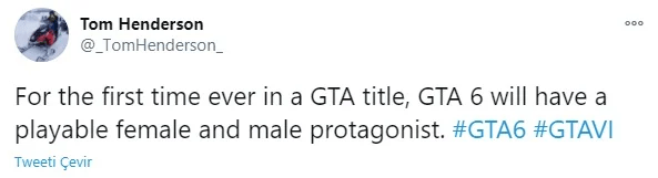 Özellikle daha önceden Call of Duty oyunlarıyla ilgili yaptığı doğru sızıntı bilgileriyle dikkatleri üzerine çeken Tom Henderson, bu sefer GTA 6’dan paylaştığı bir sızıntı ile dikkatleri tekrardan üzerine çekmeyi başardı. Tom Hendorson çıkacak olan serinin son oyunu olan GTA 6 içerisinde kadın karakter bulunacağını söyledi. Fakat şu an için Henderson’nın verdiği bilgiyi doğrulayamıyoruz. Bu konuyla ilgili Rockstar Games’ten de herhangi bir açıklama şu ana kadar yapılmadı. Ancak Henderson’nın iddialarına göre Rockstar Games, GTA 6’da olması beklenen kadın karakter üzerine çalışıyor.