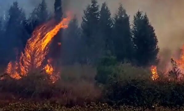 Yangında alev alan ağaçlar