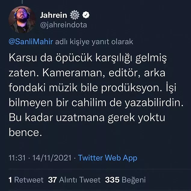 Bu paylaşımın altına bir Twitter kullanıcısı “Özür dileyecek misin peki yaptığın ithamlardan dolayı?” yazdı. Jahrein ise cevap olarak “Hayır dilemeyeceğim. İşim sorgulamak. Bundan vazgeçmeyeceğim.” yazdı ve olaylar burada alevlendi.