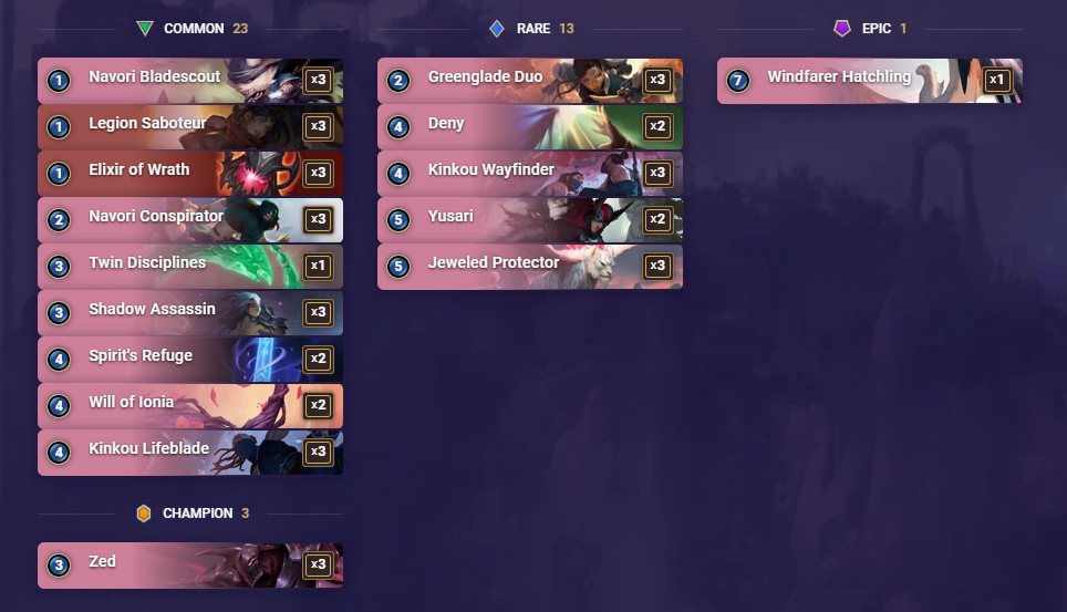 Eğer ki 16.000 kristaliniz yoksa ve Zed çıkarmadıysanız desteyi onun yerine Münzevi Keşiş ile oynayabilirsiniz ama acilen Zed bulmaya çalışmanız lazım.