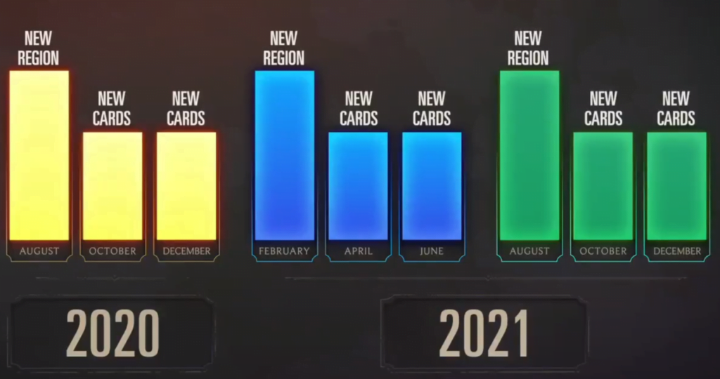 - Bölgelerin yayınlanma arasında her iki ayda bir oyuna yeni kartlar eklenecek.