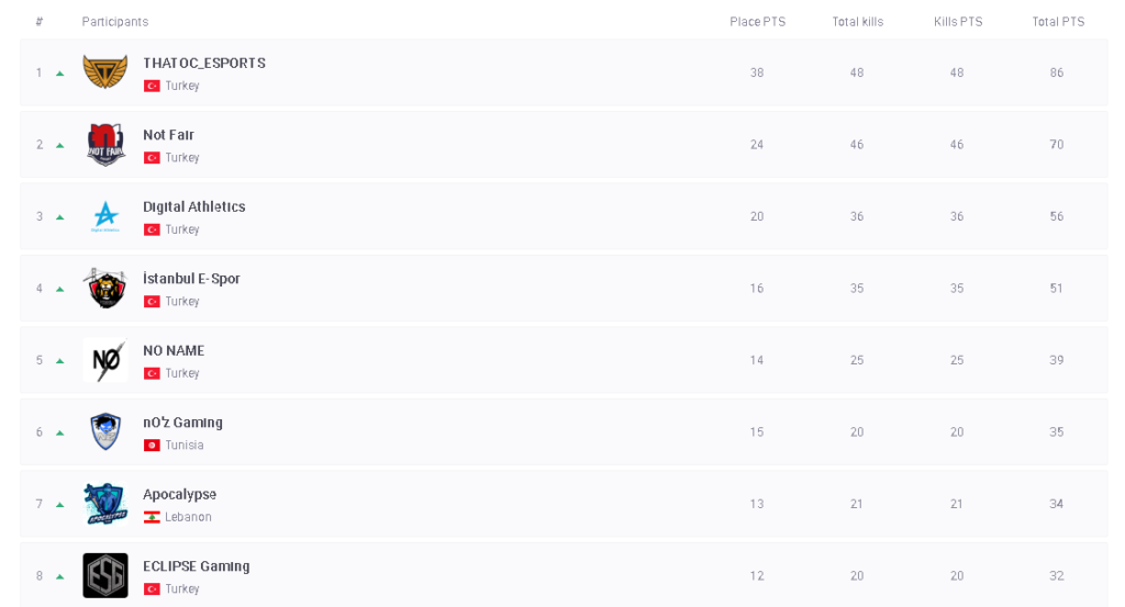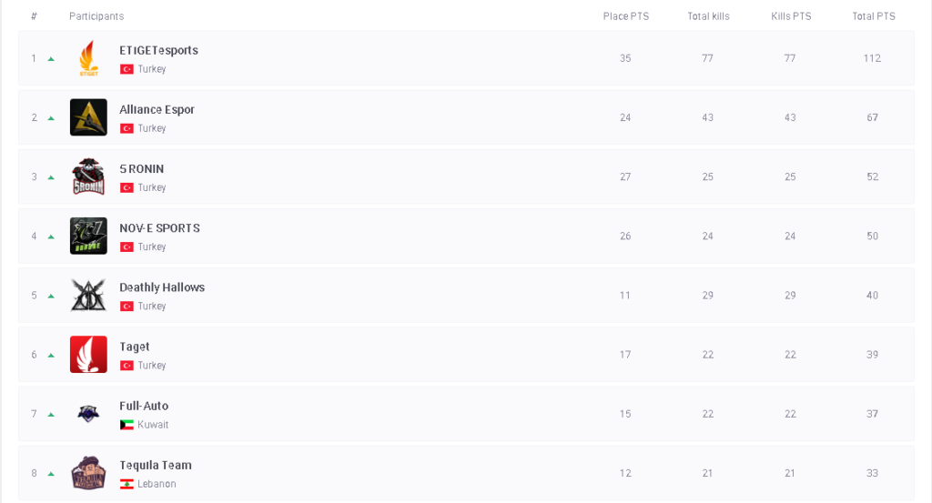 Oynanan 6 maç sonunda A grubunda Etiget Esports ekibi adeta grubunu domine ederek 112 puanla grubun lideri olurken, B grubunda ise THATOC_ESPORTS 86 puanla zirvede yer aldı. B grubunda turnuvanın favori takımlarından Not Fair 2. olurken, Not Fair ekibini ise turnuvanın en büyük favorisi Digital Athletics ekibi takip etti. C grubunda Beşiktaş Esports rahatlıkla zirvenin sahibi olurken, D grubuna gelindiğinde ise yeni transferiyle Fenerbahçe Esports zirvenin sahibi oldu. İşte oynanan maçlar sonunda yarı finale yükselen takımlar: