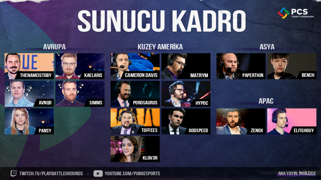 PCS Charity Showdown İngilizce Yayın Sunucu Kadrosu