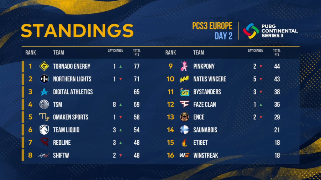 PCS 1 Avrupa şampiyonu Iroh‘lu TSM 59 puanla 4. sırada yer alırken, PCS 2 Avrupa Şampiyonu Faze Clan ise 36 puanla 12. sırada yer aldı.