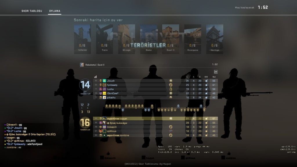 10 kişi de hazır olunca kısa süre içerisinde sistem sizin seçtiğiniz haritaya göre size özel 128 tickrateli CS:GO sunucusunu aktif ediyor. Sonrasında size gerekli olan IP ve şifre bilgisini direkt konsola yazıp girilebilecek şekilde paylaşıyor.