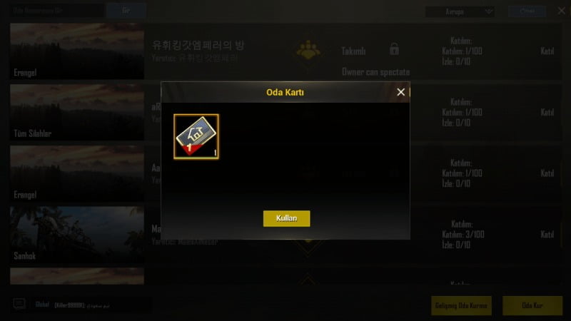 Oda kartının kullanımında dikkat etmeniz gereken bir başka nokta ise oda kartı ile açtığınız odayı oyuna girmeden kapatırsanız oda kartını kullanma hakkınızı kaybediyorsunuz ve 10 gün daha beklemeniz gerekiyor.