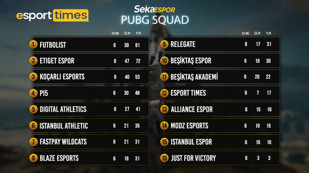 Gün boyu Futbolist ve Etiget Espor arasında çekişmeye sahne olan maçlarda, son maçı kazanan Futbolist ekibi gülen taraf oluyor ve 5.000 TL‘lik büyük ödülün sahibi oluyor. 2. olan Etiget Espor 3.000 TL kazanırken Koçarlı Espor ise 2.000 TL‘nin sahibi oluyor. Koçarlı Espor ekibinden Tusda 14 kill ile takımına büyük bir katkı sağladı. İşte sonuçlar: