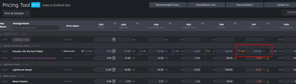 Steam üzerinde 1 dolar fiyatı olan ürünler artık 10 TL olarak satıla konulabilecek. Ama bu sadece otomatik olarak fiyatlandırma yapan oyunlar için geçerli. Oyun geliştiricisi eli ile belirliyorsa daha farklı fiyatlandırmalar görebiliriz.