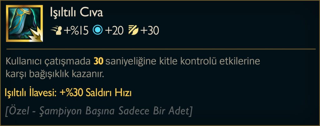 - Işıltılı Bonus: +%30 Saldırı Hızı