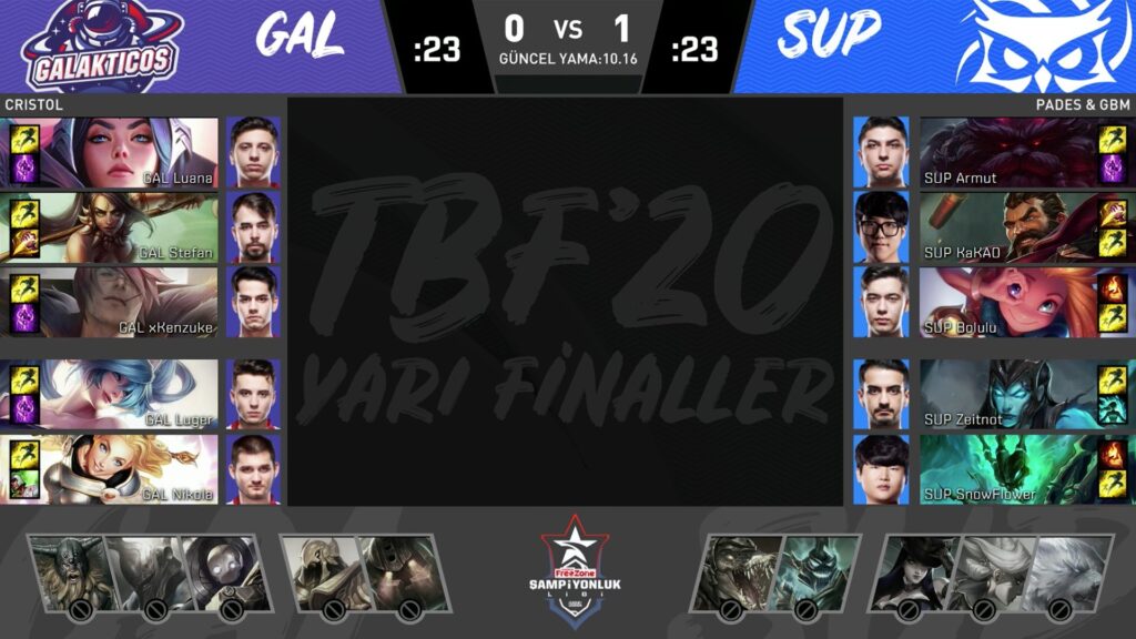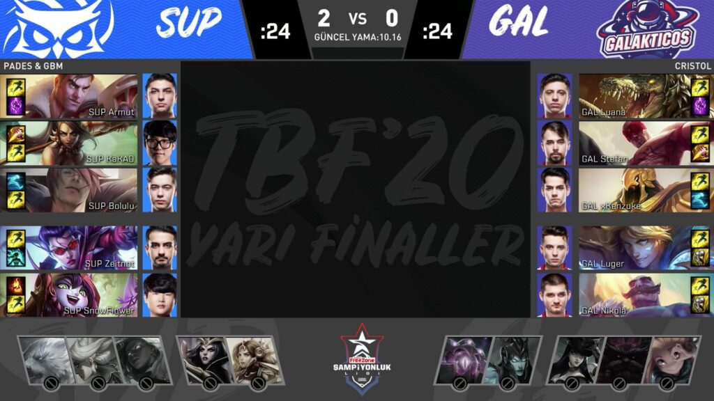 - 24. dakikada GAL tarafının başladığı Baron Nashor, SUP’un rakibini iyi bir şekilde sıkıştırmasıyla SUP tarafından kaldı.