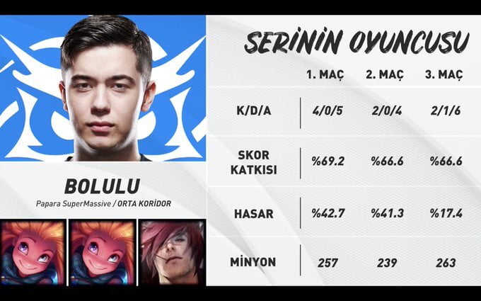 - Bu sonuç ile seriyi 3-0 kazanan ve tüm karşılaşmalarda üstünlüklerini net şekilde ortaya koyan SuperMassive, tecrübesini konuşturmuş oldu ve Türkiye Büyük Finalinde tarihinde ilk defa bu arenaya çıkacak olan 5Ronin’in rakibi oluyor.