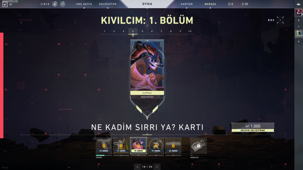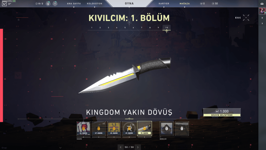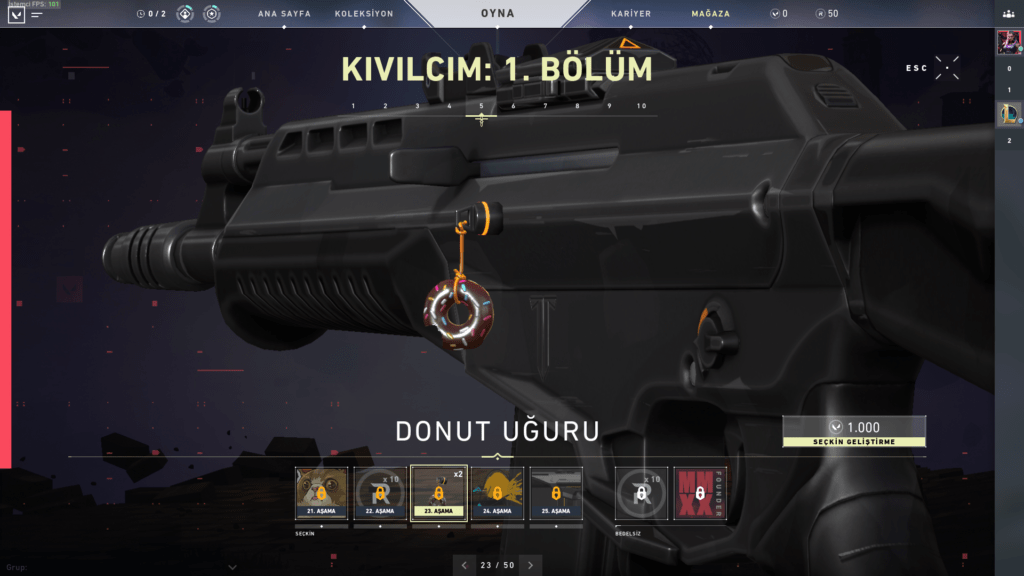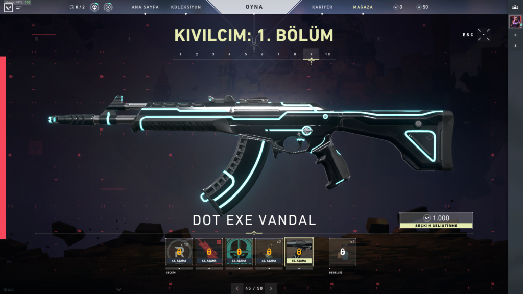 Dilerseniz önce ödüllere değinelim çünkü merakla ”Ne gibi ödüller var acaba?” dediğinizi duyar gibiyim. Hemen cevap vereyim, Valorant Battle Pass 1. Bölüm‘de kesinlikle tatmin edici ödüller var. Genel olarak söyleyecek olursak bir çok silah skini, spreyler, oyuncu kartlar, silaha takılabilen uğurlar ve 50. aşamaya gelirseniz sizi bir de bıçak bekliyor.