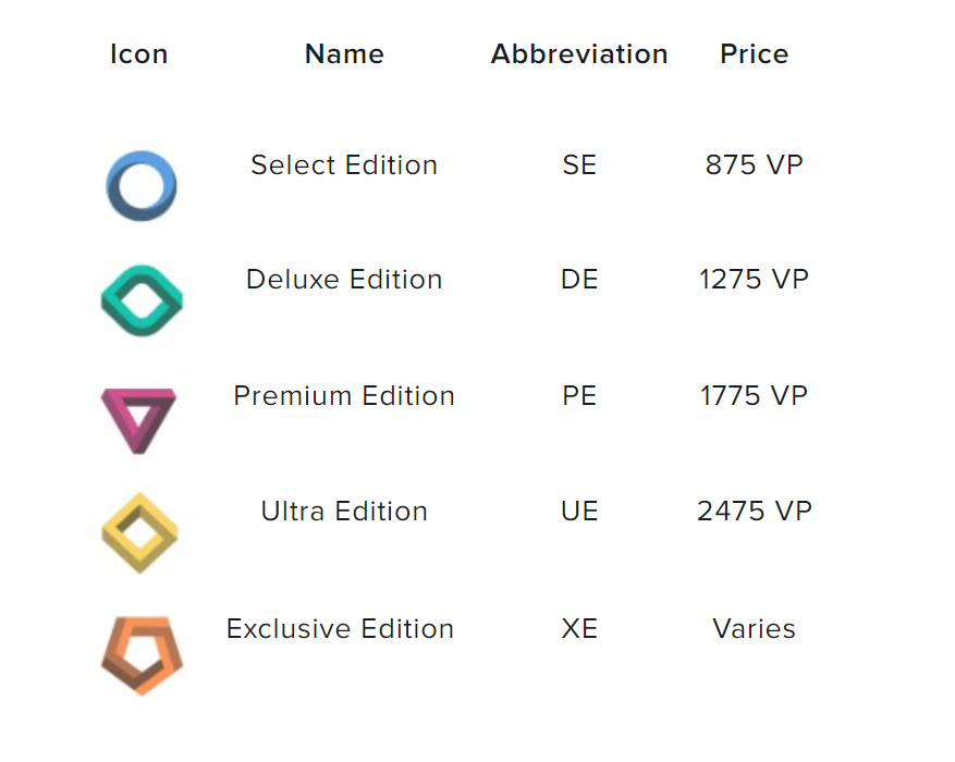 Riot Games’in diğer oyunlarında olduğu gibi Valorant’ta da dudak uçuklatan ücretlendirmeler görmek mümkün oluyor. En düşük ücretliden en pahalıya doğru yapılan tier listesinde, Select Edition en düşük uçta yer alırken Exclusive Edition zirvede duruyor.