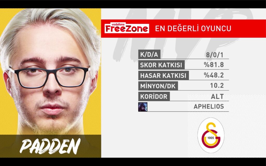 Karşılaşmanın En Değerli Oyuncusu 8/0/1 skoru ile Padden oldu.
