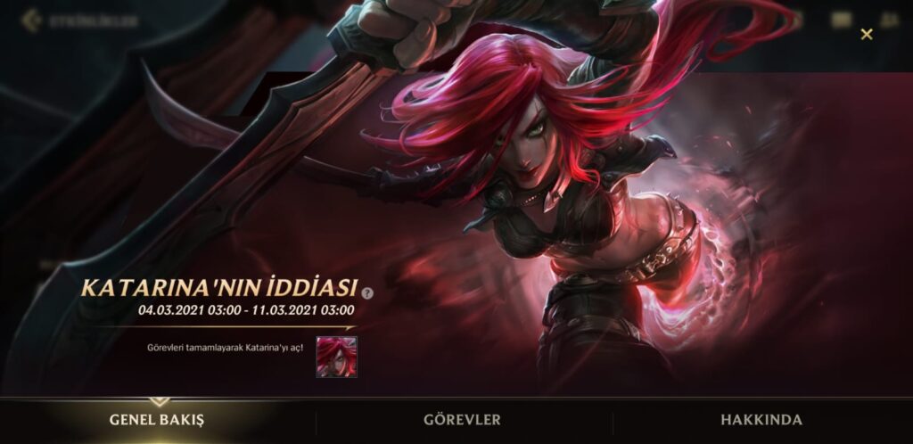 Wild Rift Katarina’nın İddiası Etkinliği başladı. Oyuncular gelen yeni etkinlikle beraber verilen görevleri yerine getirerek Katarina’ya sahip olacak.