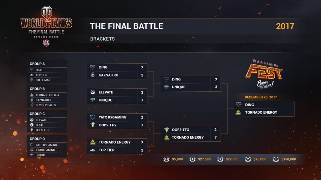 2017 yılında ilk espor etkinliği ile birlikte kendisine espor arenasında yer edinen World of Tanks, The Final Battle Turnuvasıyla başlangıcını yapmıştı.