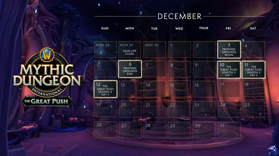 Dünyanın en büyük oyun firmalarından olan Blizzard, The Great Push sezon iki rekabetçi zindan turnuvasının detaylarını açıkladı. The Great Push turnuvasının ikinci sezonu 10-12 Aralık tarihleri arasında gerçekleşecek.