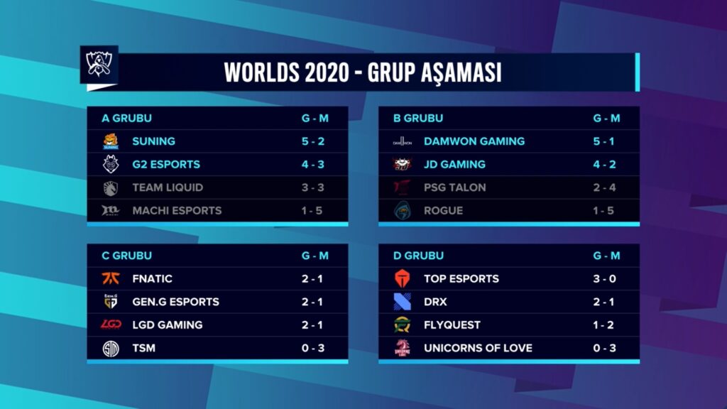 Worlds 2020 Grup Aşaması’nın ikinci yarısı 8 Ekim TSİ 11.00’de başlamıştı. İkinci yarıda geçilen formatla her gün bir grubun kalan maçları oynanacak ve böylelikle her gün bir grup tamamlanacaktı. İkinci yarının ilk gününde A grubu tamamlanmış ve G2 Esports ile Suning gruptan çıkmayı başarmıştı. İkinci yarının ilk gününe aşağıdaki haberimizden ulaşabilirsiniz.