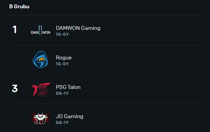 LEC’i üçüncü sırada bitiren Rogue ile PSG Talon’un karşılaştığı B Grubu maçı, yine ilk iki maç gibi hızlı bitti. Rogue, skor tablosuna kendi lehine 16-0 yazdırdığı karşılaşmada PSG Talon’u oyundan çok erken düşürdü. Bir daha geri dönemeyen PSG Talon ilk mağlubiyetini alırken Rogue güzel bir galibiyet ile başladı.