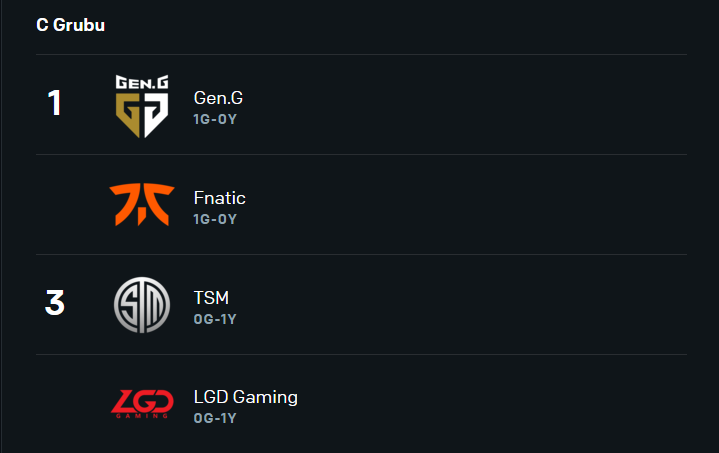Günün dördüncü maçında C Grubu’nda ikinci Güney Kore – Çin düellosunu izledik. Bu sefer LCK birincisi Gen.G ile LPL dördüncüsü olan ve Ön Elemeler’de rakiplerini silip süpüren LGD Gaming karşı karşıya geldi. Günün en heyecanlı ve aksiyonlu maçıydı desek yanlış demiş olmayız ancak sonuç değişmedi. Güney Kore bir kez daha kazandı. LCK temsilcisi Gen.G rakibi LPL temsilcisi LGD Gaming’i yenmeyi başardı ve gruplara galibiyet ile başladı.