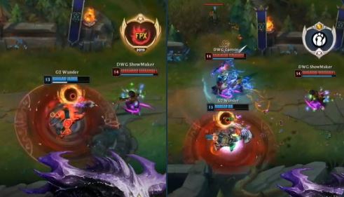 - 7. dakikada G2 Caps ve Jankos’un oyunu ile başlayan savaşa Damwon iyi karşılık vererek savaştan 3-1 skor avantajı ile çıkmayı başardı.