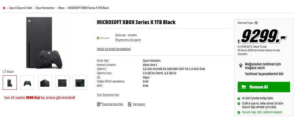 Microsoft Xbox Series X 1TB Black, ülkemizde 9299 ₺ gibi bir ücretle raflardaki yerini alması öngörülüyor.