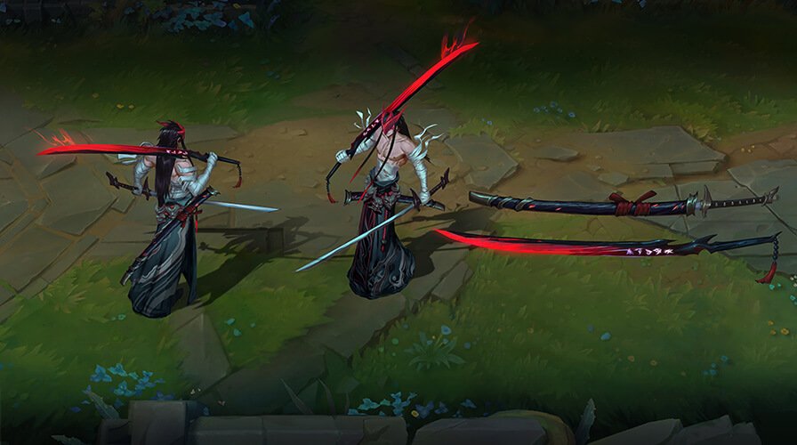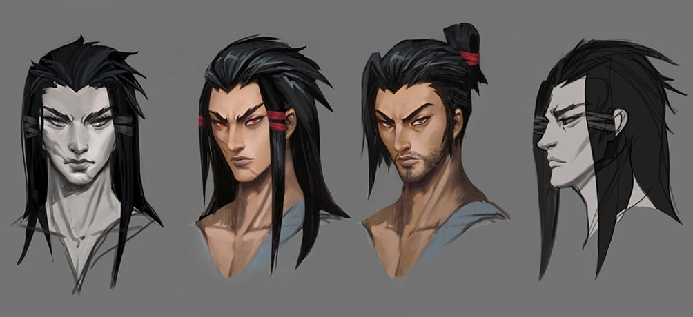 Çizimi yönünde çalışmalar yapılırken, geleneksel Ionia kıyafetleri giydirildiği zaman çok fazla Yasuo’ya benzemiş. Ölümcül bir yara aldığı göstermesi için bandajlar eklenmiş.