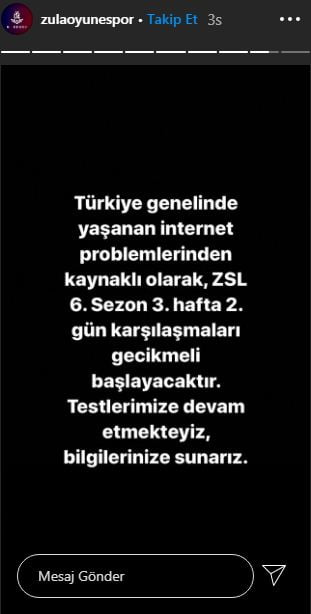 Ertelenmenin nedenini merak eden oyuncular ve taraftarlar, sonradan birkaç espor kulübünün yaptığı açıklama ile durumu öğrendiler. Sabah saatlerinden beri ülke genelindeki internet bağlantı problemleri Zula Süper Ligi’nde 3. haftayı da etkiledi.