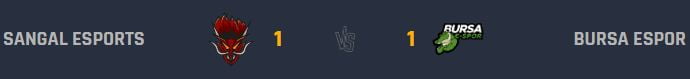 Maça iyi başlayan taraf ve ilk puanı hanesine yazdırmayı başaran Bursa Espor olsa da ikinci haritada gösterdikleri reaksiyon maçı kazanmalarına yetmedi. İkinci haritayla biraz olsun toparlanmayı başaran Sangal Esports ekibi maçtan bir puan almayı başardı. Böylece alınan beraberlik skoruyla iki ekip ligde ilk kez puan alma coşkusu yaşadı. Ligin son sıralarında yer alan iki ekip önlerindeki maçlara odaklanmaya devam ediyor.