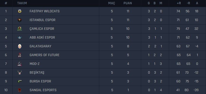 Ligin heyecanının bir an bile azalmadığı Zula Süper Ligi 6. sezonunda takımlar şampiyonluğu gerçekten çok istiyorlar. Bu isteklerini bizlere her maçta göstermeyi fazlasıyla başarıyorlar. Ligde devam eden 6. sezonun 3. haftasının ilk maç gününün tamamlanmasıyla birlikte ortaya çıkan yeni puan durumu ise şu şekilde oluştu:
